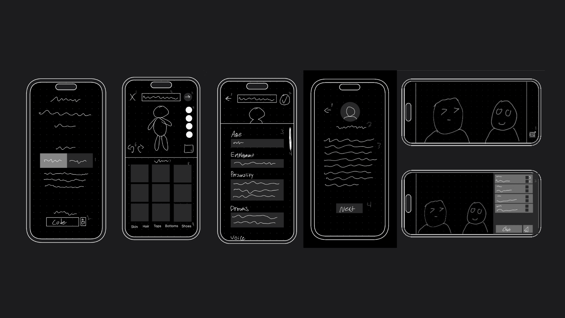With the core mechanics established, the focus shifted to the discovery layer. I designed the centralized Hub to aggregate Live Rooms, featured Clips, and community Stories, serving as the primary entry point for the experience. For this phase we started within Figma Make to iterate quickly, but due to its limitations we moved back to Design to build on what we had. New concepts were presented like a new way to customize character's personalities and appearances, so as new ideas were discussed, I'd go back to make some design changes to the past screens to maintain design cohesiveness.